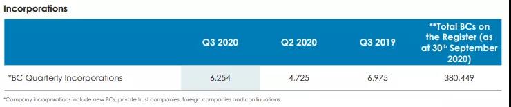 截至2020年9月30日,在BVI注冊的公司總數已達380,449家。新注冊的公司包括商業公司、私人信托公司、外國公司和延續公司。
